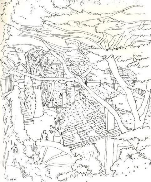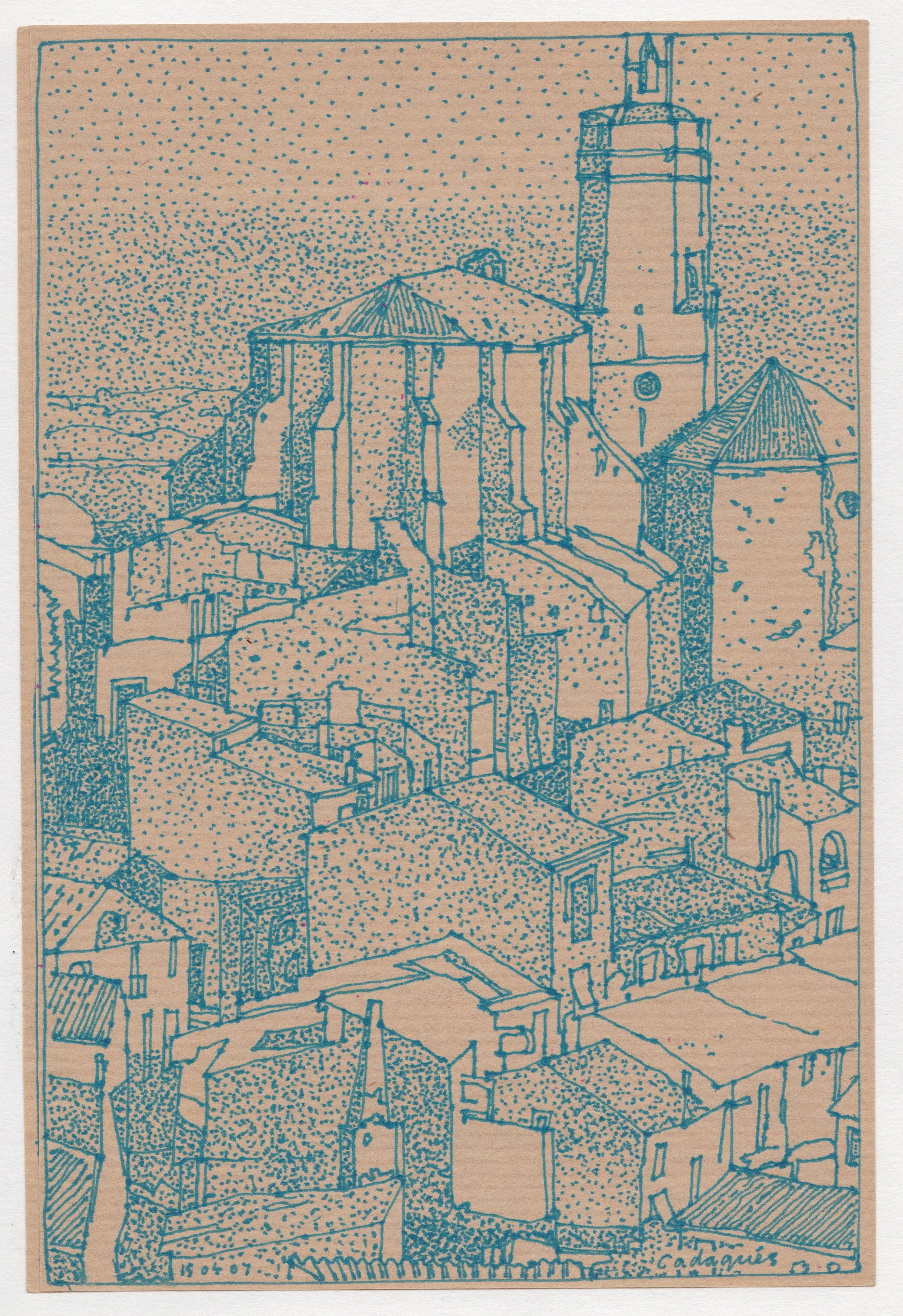 Flat roof, Costa Brava pen on paper 20 x 13 cm